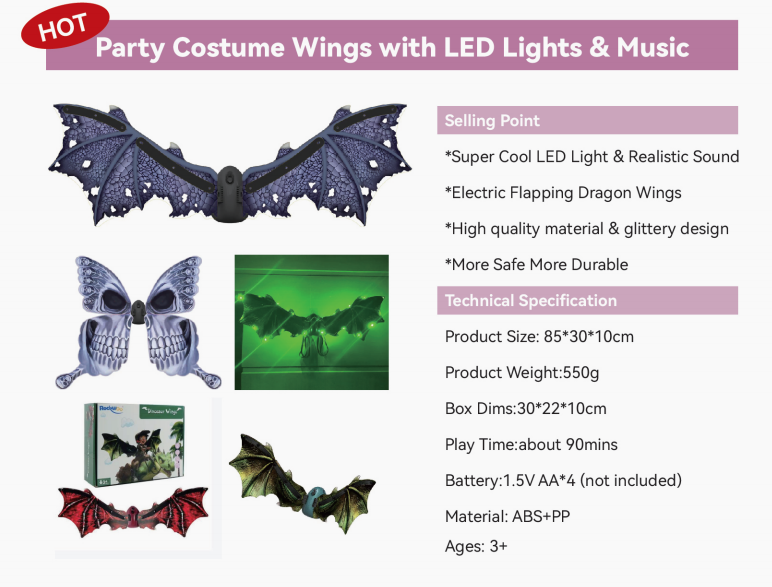Home > Products > Costume Pretend Play > Party Costume Wings with LED Lights & Music
