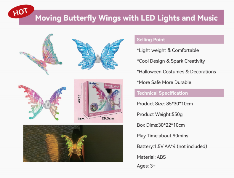 Home > Products > Costume Pretend Play > Moving Butterfly Wings With LED Lights and Music