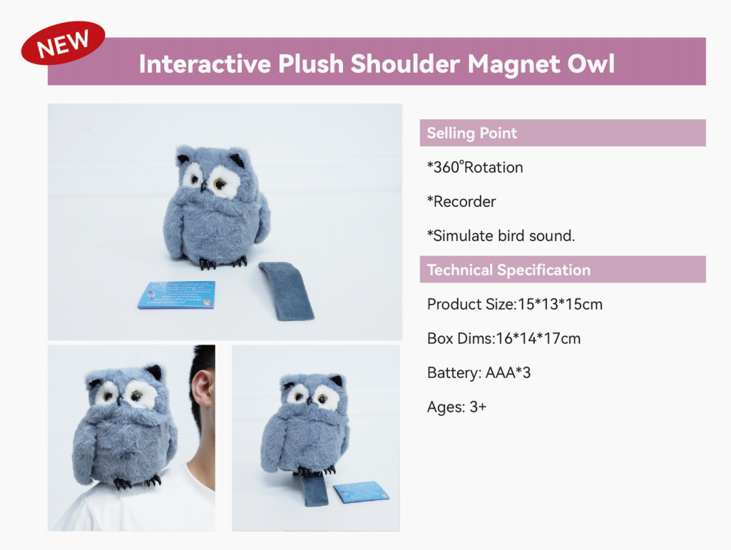 Home > Products > Interactive Toys > Interactive Plush Shoulder Magnet Owl